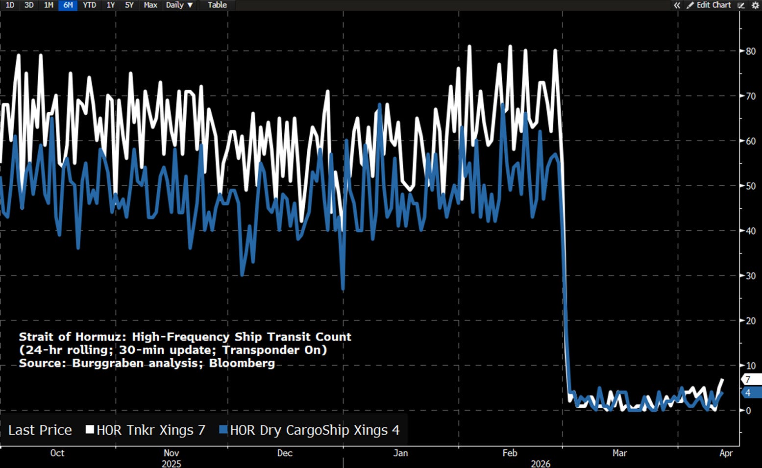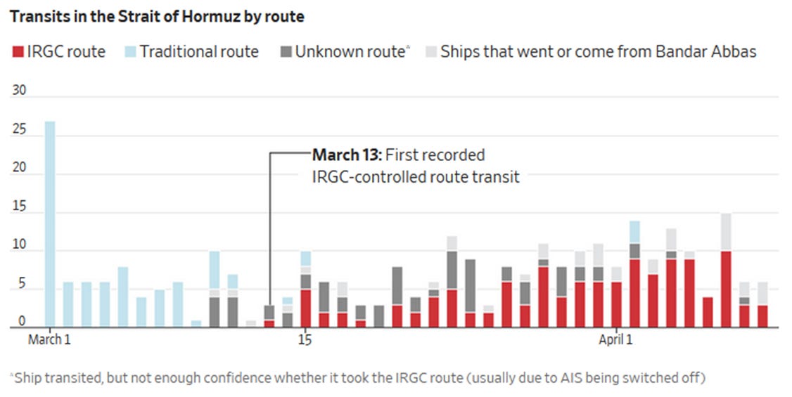 I still expect more vessel transits to be registered in the coming days, perhaps weeks, even in the absence of a deal. That, however, is not what matters. After all, exits from the Strait resemble the kind of escape one would expect after being trapped for six weeks.