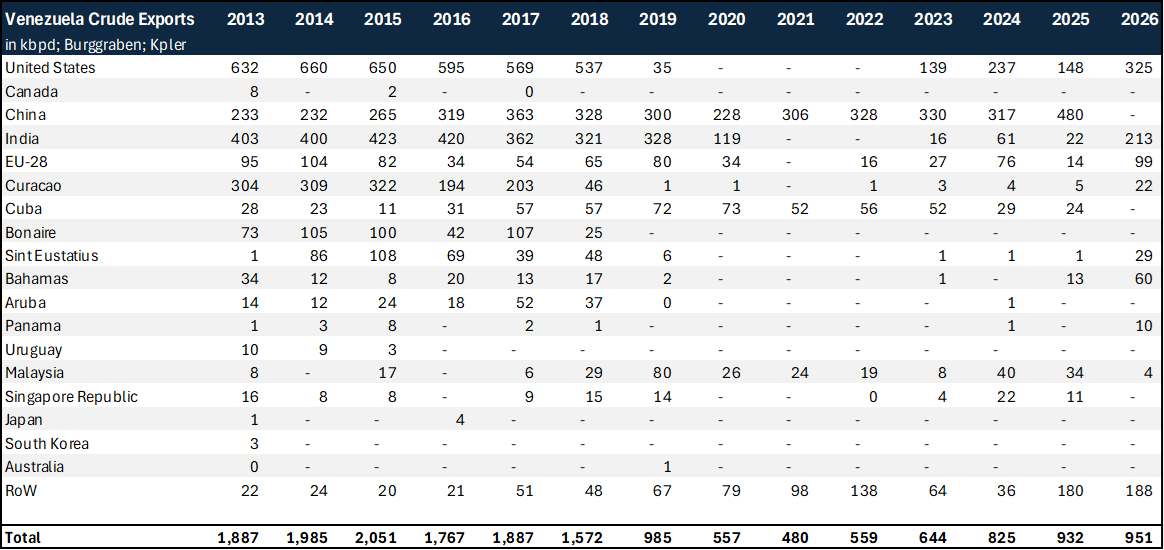 That, in turn, accelerates long-term workarounds that marginalise Iran’s influence, if the regime does not unravel beforehand. Beyond regional pipeline developments, Venezuela could become an important part of that adjustment. In 2026, it exported roughly 0.95mbpd, but it has the potential to return to 2014 levels of 2.0mbpd with relatively modest investment. The world needs to replace up to 14mbpd, this is not the solution, but it is a start.