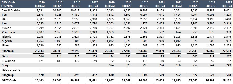 The latter, however, must be established. The starting point for oil output growth is property rights, the rule of law & free market enterprise. Without that, expect little growth despite prolific oil reserves. Perhaps 1.5mbpd by year-end 2027? Who knows.