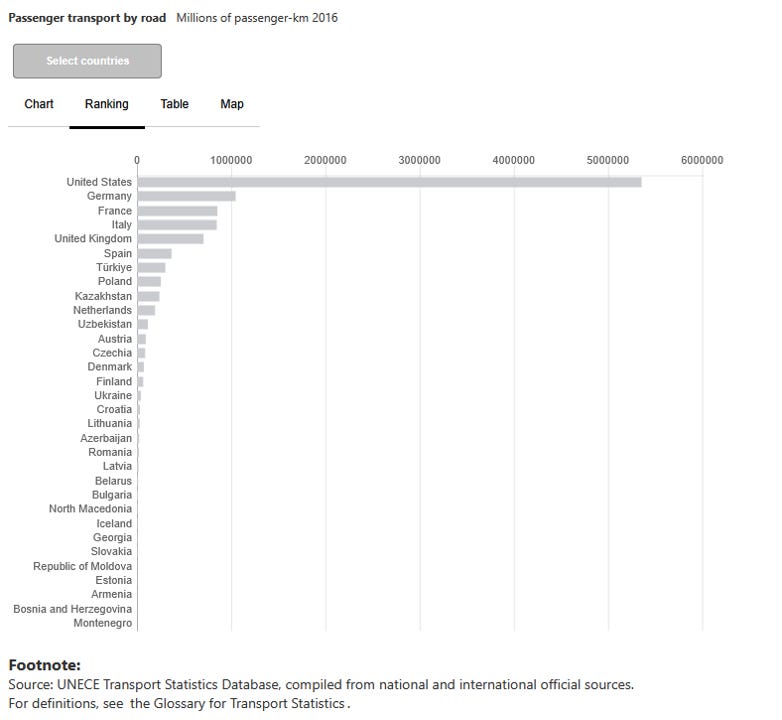 Russia (RZD) in 2023: 136.3bn passenger-km (103bn long-distance; 33bn suburban). With 146 million people that’s 930 passenger-km per person — about 40% of Swiss usage. RZD does not publish comparable national seat-km, but given longer trains serving lower density, offered capacity per capita is well below Swiss levels. And none of that speaks to what happens after you step off the train in a far-flung oblast without trams, frequent buses, or reliable taxis. Believe me. I have been in the pampa many times. Not pretty.