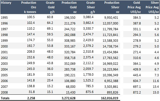 Following permitting, Eskay Creek entered production as an underground mine in 1994. Over the following 14 years, Eskay Creek produced roughly 3.3Moz of gold and 160Moz of silver at average grades of 45g/t Au and 2,224g/t Ag. It became the highest grade gold mine in the world and, by volume, the fifth largest silver producer globally.